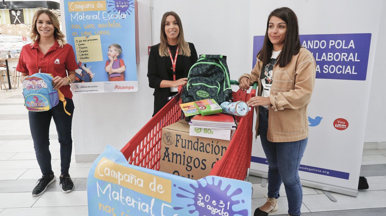 La aportación ha sido posible gracias a la colaboración ciudadana a través de las mesas instaladas en los hipermercados Alcampo de Vilagarcía de Arousa y Santiago de Compostela, donde los clientes de estos establecimientos depositaron sus donaciones de material escolar nuevo.