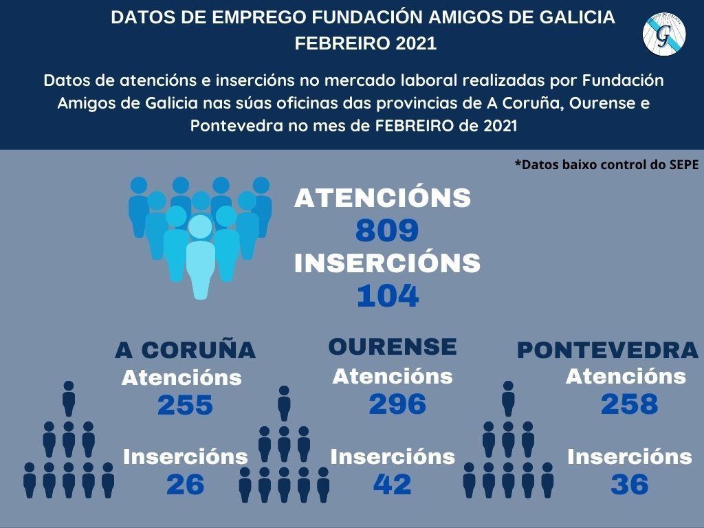 En Galicia, se realizaron en todo el mes de febrero un total de 809 atenciones, consiguiendo la inserción de 104 personas.