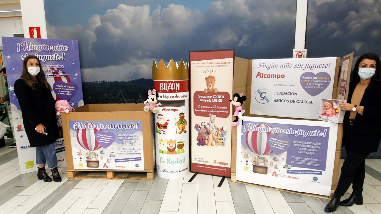 Dentro de la campaña de Amigos de Galicia se enmarca la propia de Alcampo Vilagarcía, “Ningún niño sin juguete”, que ya ha comenzado la recogida de juguetes. Este año con motivo del Covid todos los juguetes donados deben ser nuevos y no tienen que ser comprados necesariamente en el hipermercado. El punto de recogida en el establecimiento comercial de As Carolinas permanecerá operativo hasta el 20 de diciembre. “El año pasado tuvimos que tirar la mitad de las donaciones porque los juguetes no estaban en buen estado”, lamenta la representante de Alcampo, Karina Cores.