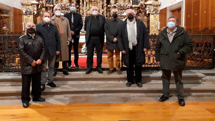 El canónigo de la Catedral José Fernández Lago (en el centro) ofició la misa en la Iglesia de San Paio de Antealtares