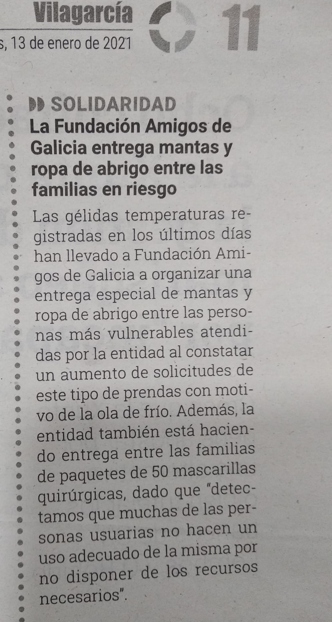 Un total de 16 familias se beneficiaron de la iniciativa solidaria puesta en marcha por la Fundación Amigos de Galicia con motivo del Día de Reyes, a través de la cual se ayer procedió a la entrega de 26 roscas para que estas fechas no pasen desapercibidas en ninguna casa.